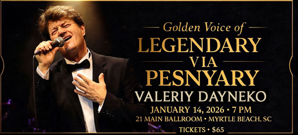 And now, Valeriy Dayneko — one of Pesnyary’s most celebrated soloists — is performing LIVE right here in Myrtle Beach for one extraordinary evening.